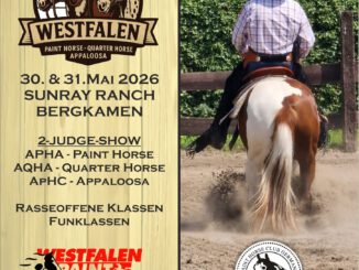 2 Judge APHA | 2 Judge AQHA | 2 Judge ApHC Show Rasseoffene Klassen – Fun Klassen Wann: 30.05.2026 bis 31.05.2026 Wo: Sunray Ranch Friedhofstraße 26, 59192 Bergkamen, Deutschland